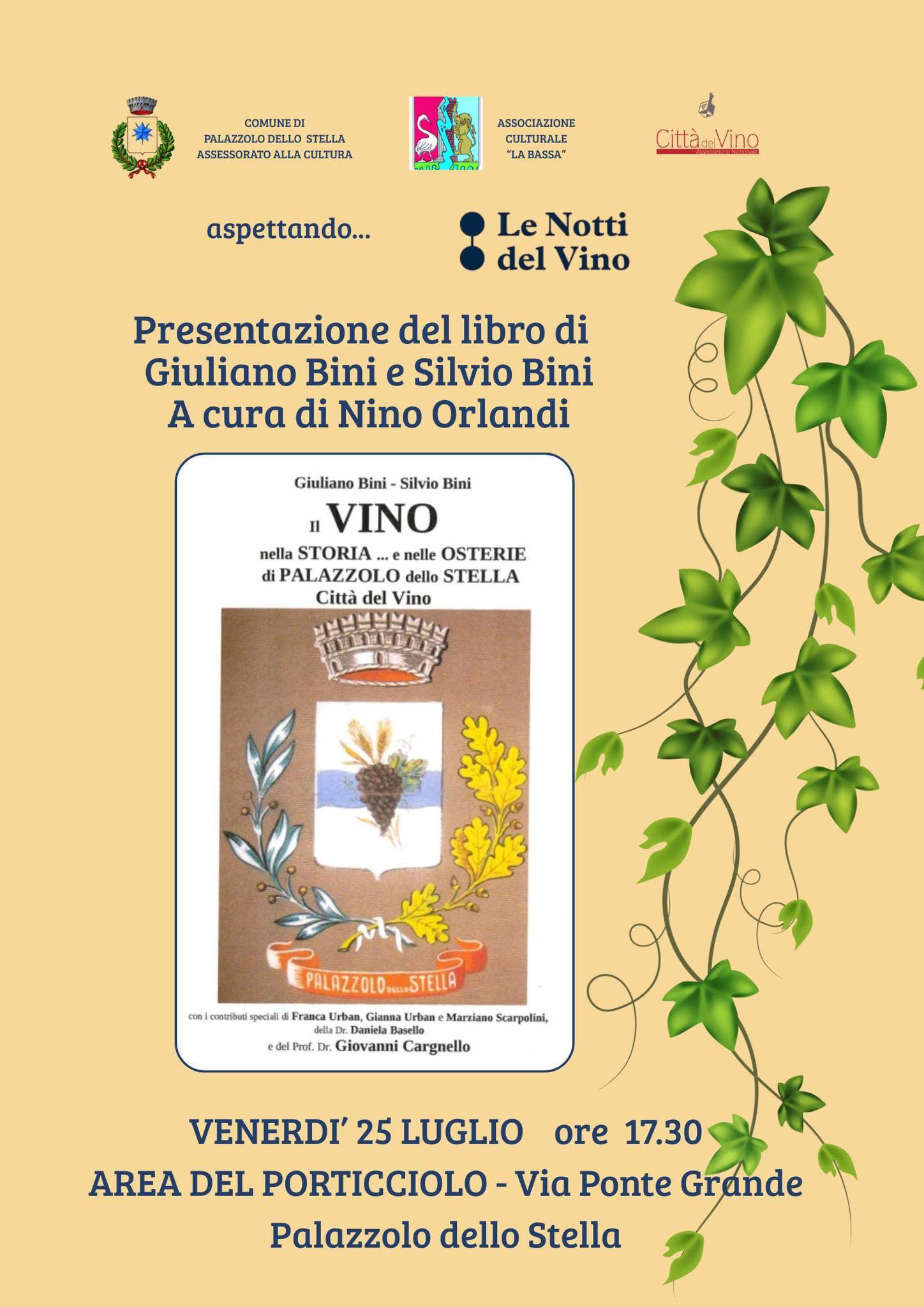 Presentazione del libro di Giuliano Bini e Silvio Bini “Il VINO nella Storia… e nelle OSTERIE di Palazzolo dello Stella Città del Vino”, a cura di Nino Orlando.