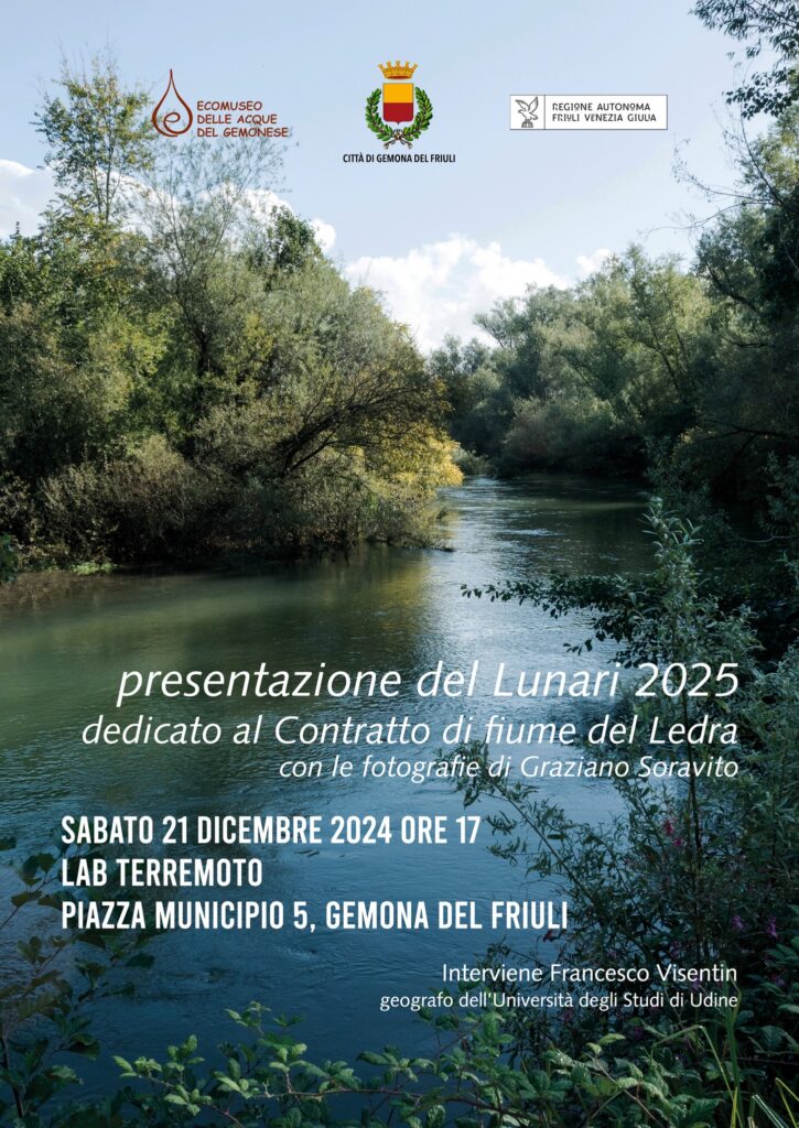 Corredato dalle fotografie di Graziano Soravito, il nuovo calendario è dedicato al Contratto di fiume del Ledra, un progetto a cui daremo avvio nei prossimi mesi. Alla presentazione interverrà Francesco Visentin, geografo dell’Università degli Studi di Udine