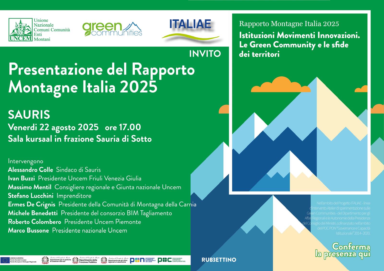 Rappoto Montagne Iatalia 2025 - Istituzioni Movimenti Innovazioni. La Green Community e le sfide dei territori.