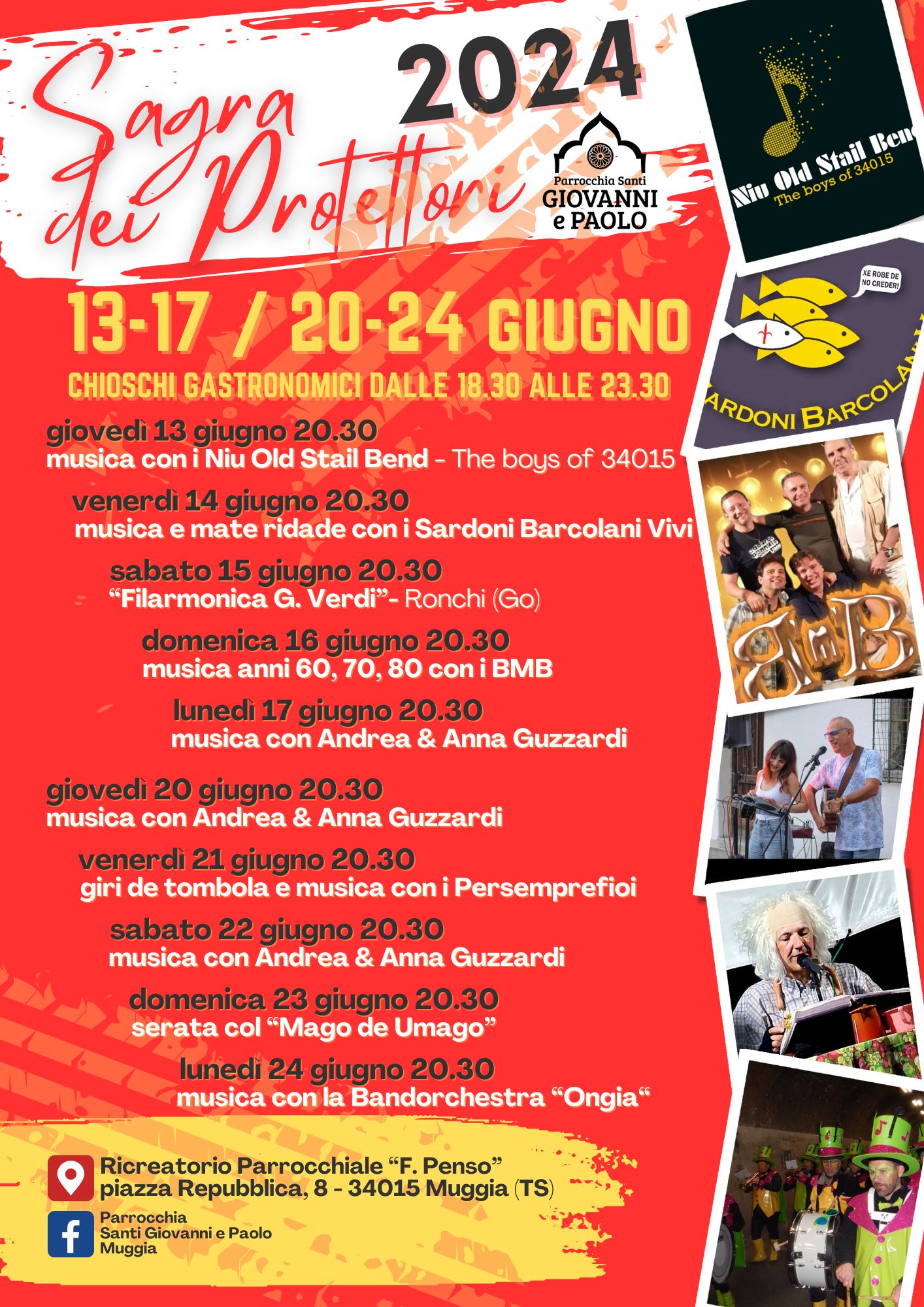 Dal 13 al 17 giugno e dal 20 al 24 giugno 2024, si terrà la "Sagra dei Protettori" presso il Ricreatorio Parrocchiale "F. Penso" di Muggia.