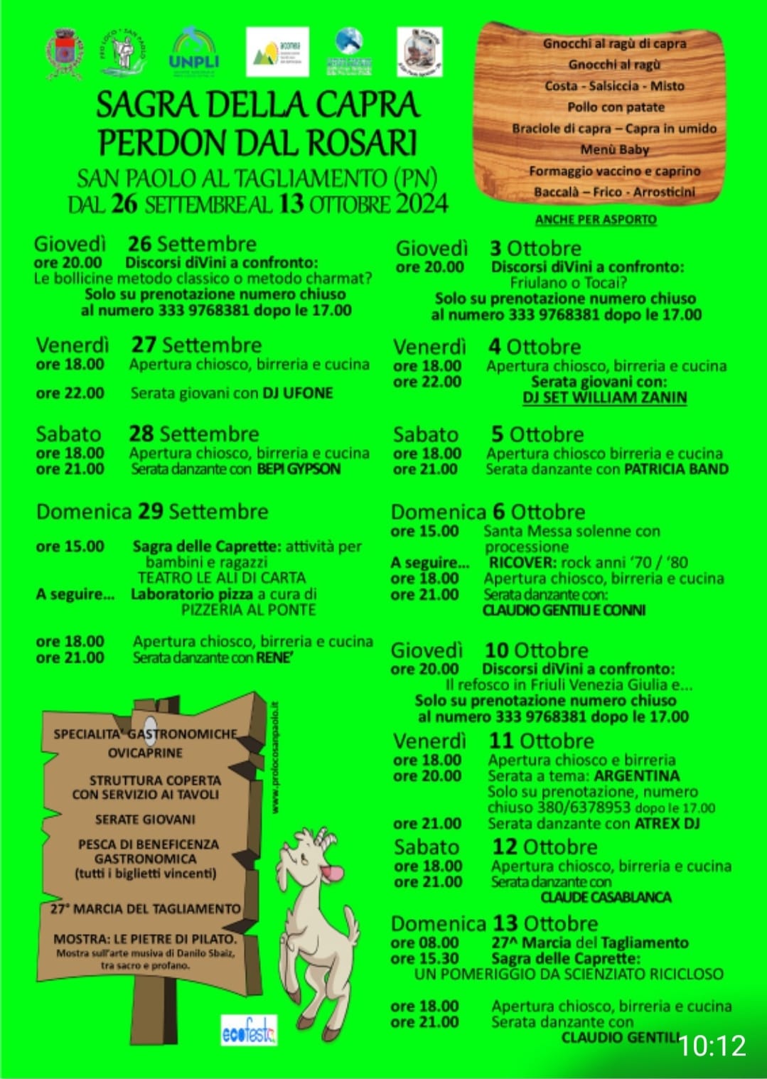 Inoltre, musica dal vivo ogni sera, ballo con orchestre, una marcia non competitiva lungo il Tagliamento e tanti laboratori per bambini nella speciale sezione chiamata “Sagra delle Caprette”.