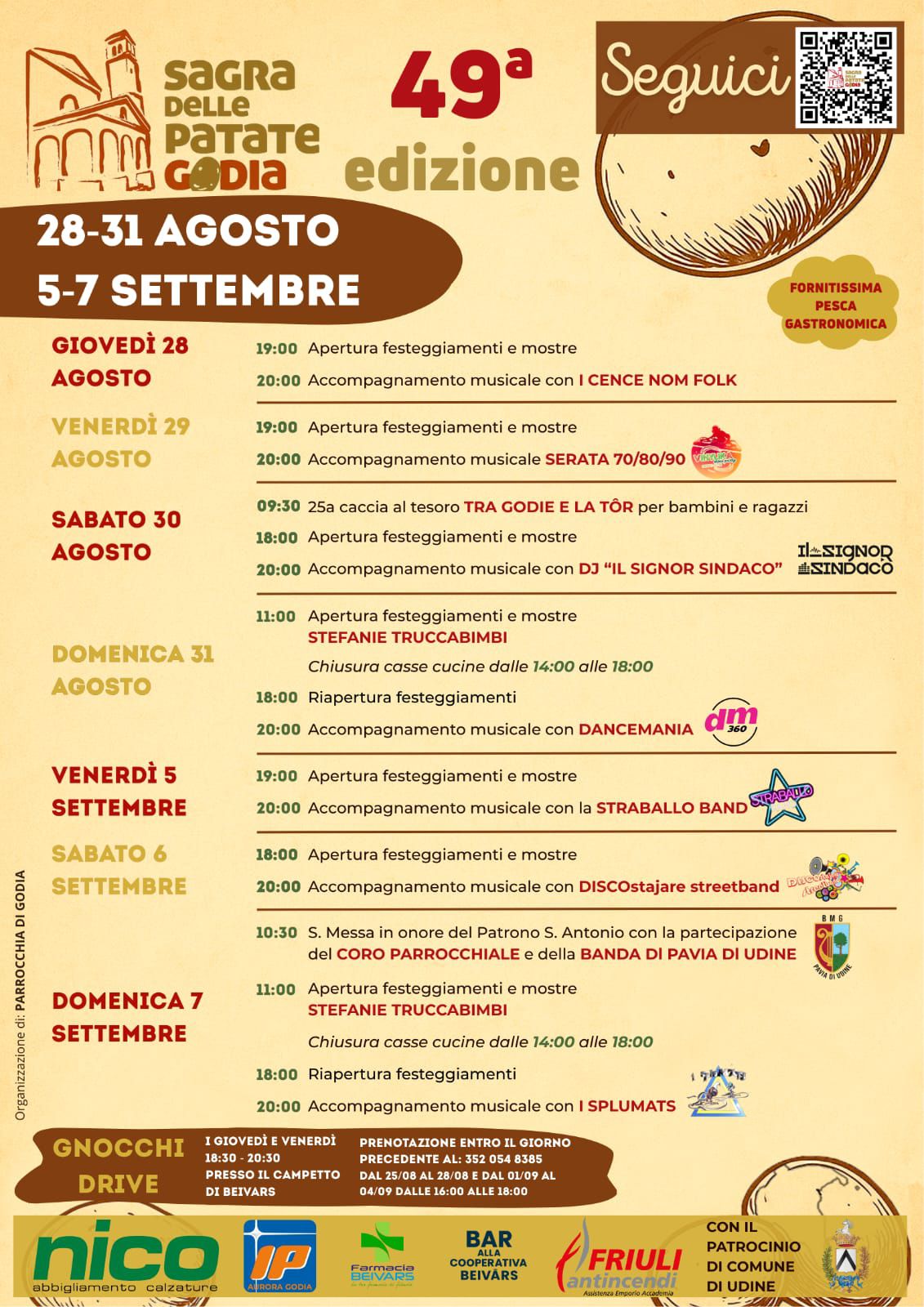 La novità dell’edizione 2025 – spiegano gli organizzatori – è innanzitutto la scelta di valorizzare le nostre specialità culinarie utilizzando non più piatti e posate usa e getta, per quanto compostabili, ma piatti in melamina e posate in metallo: verranno quindi lavati e riutilizzati, consentendo di gustare al meglio gnocchi, frico e quant’altro”. L’altra novità è lo stand adibito ad enoteca, ed interamente dedicato ai vini del Collio; che si affiancheranno all’ormai consolidata offerta di birre artigianali.Programma in allegato