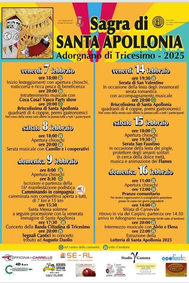 Sagra di S. Apollonia ad Adorgnano di Tricesimo dal 7 all'16 febbraio