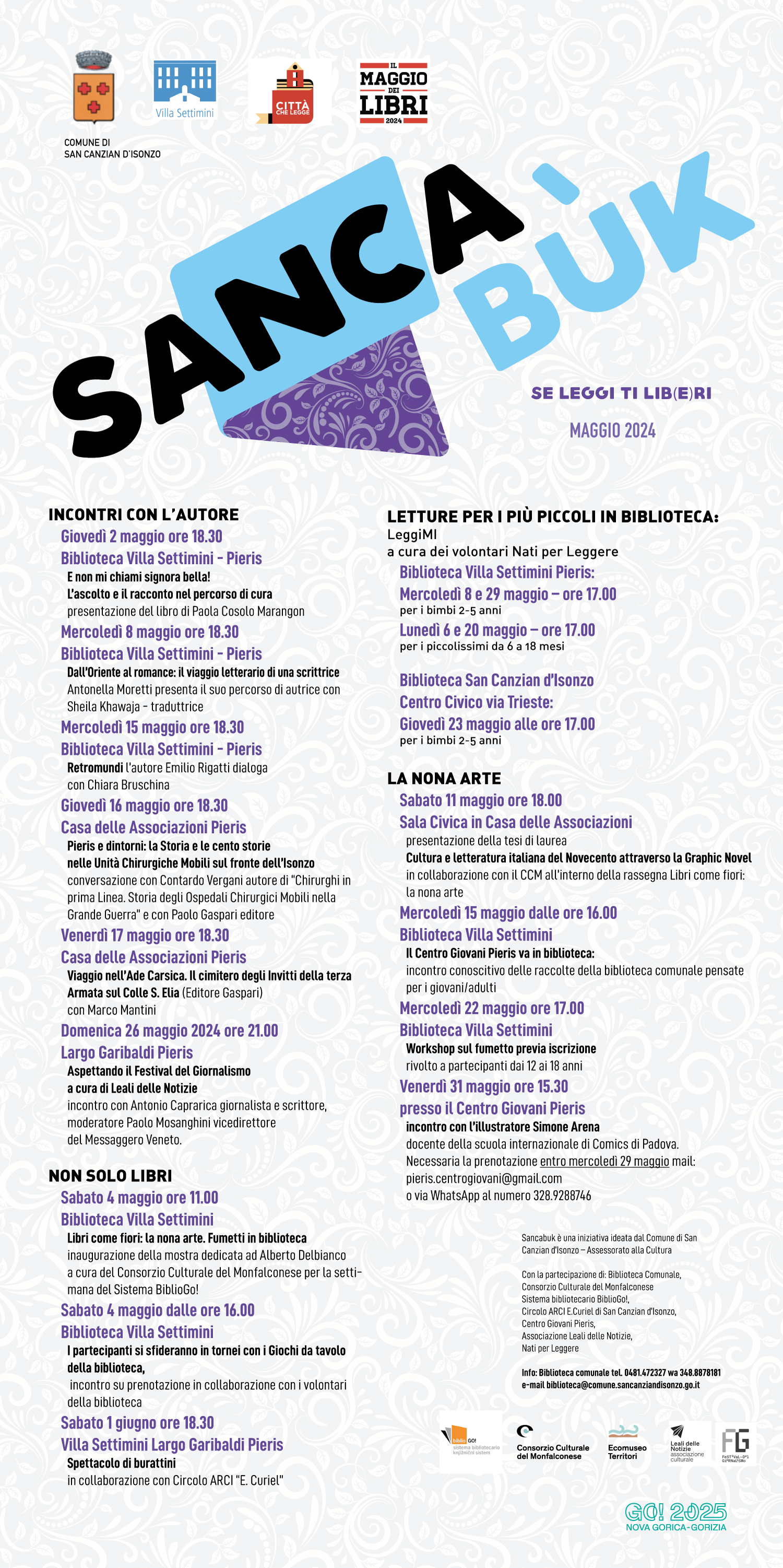 Info: Biblioteca comunale tel 0481.472327 wa 348.8878181 / biblioteca@comune.sancanziandisonzo.go.it