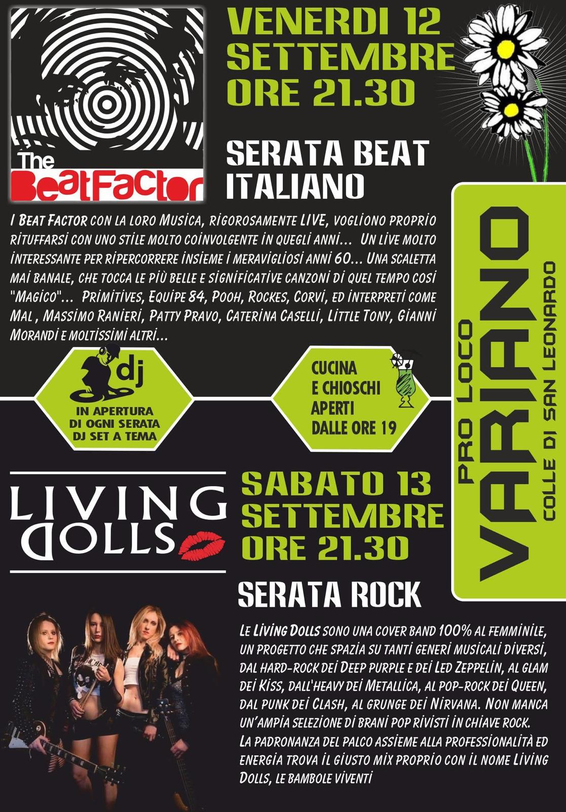 Due serate dedicate alla musica Italiana e Rock da non perdere.