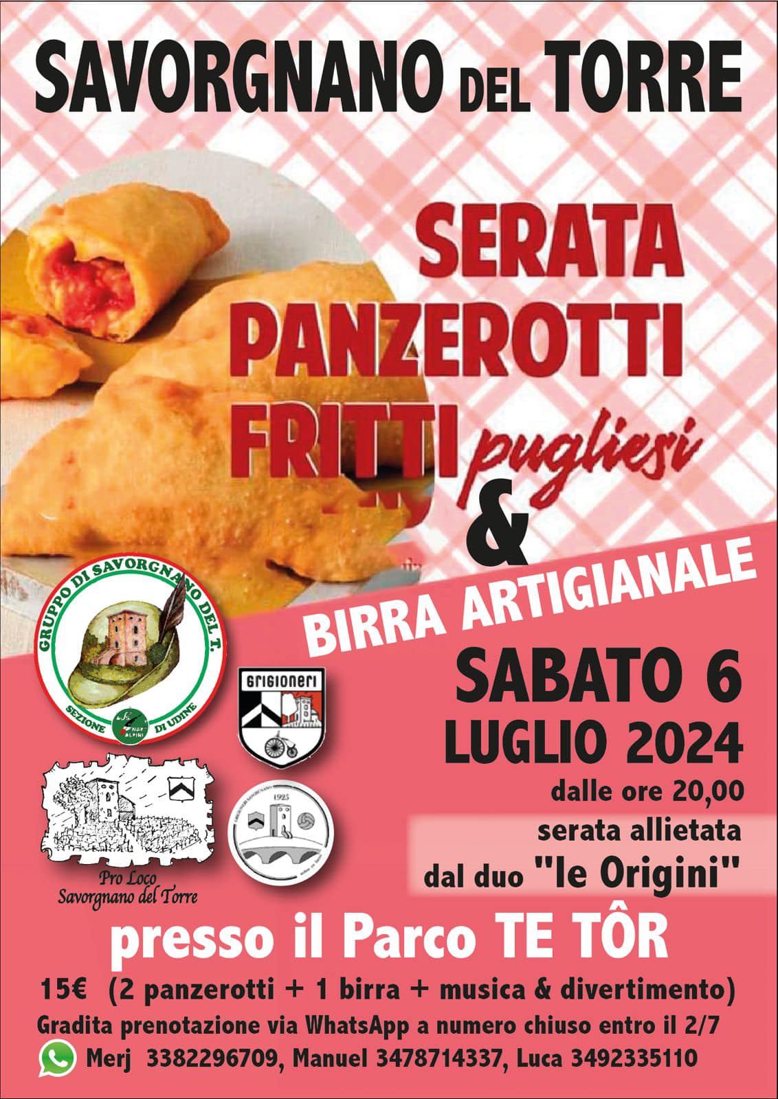 Prenotazione via Wa entro il 2/7 Merj 338 2296709, Manuel 347 8714337, Luca 349 2335110