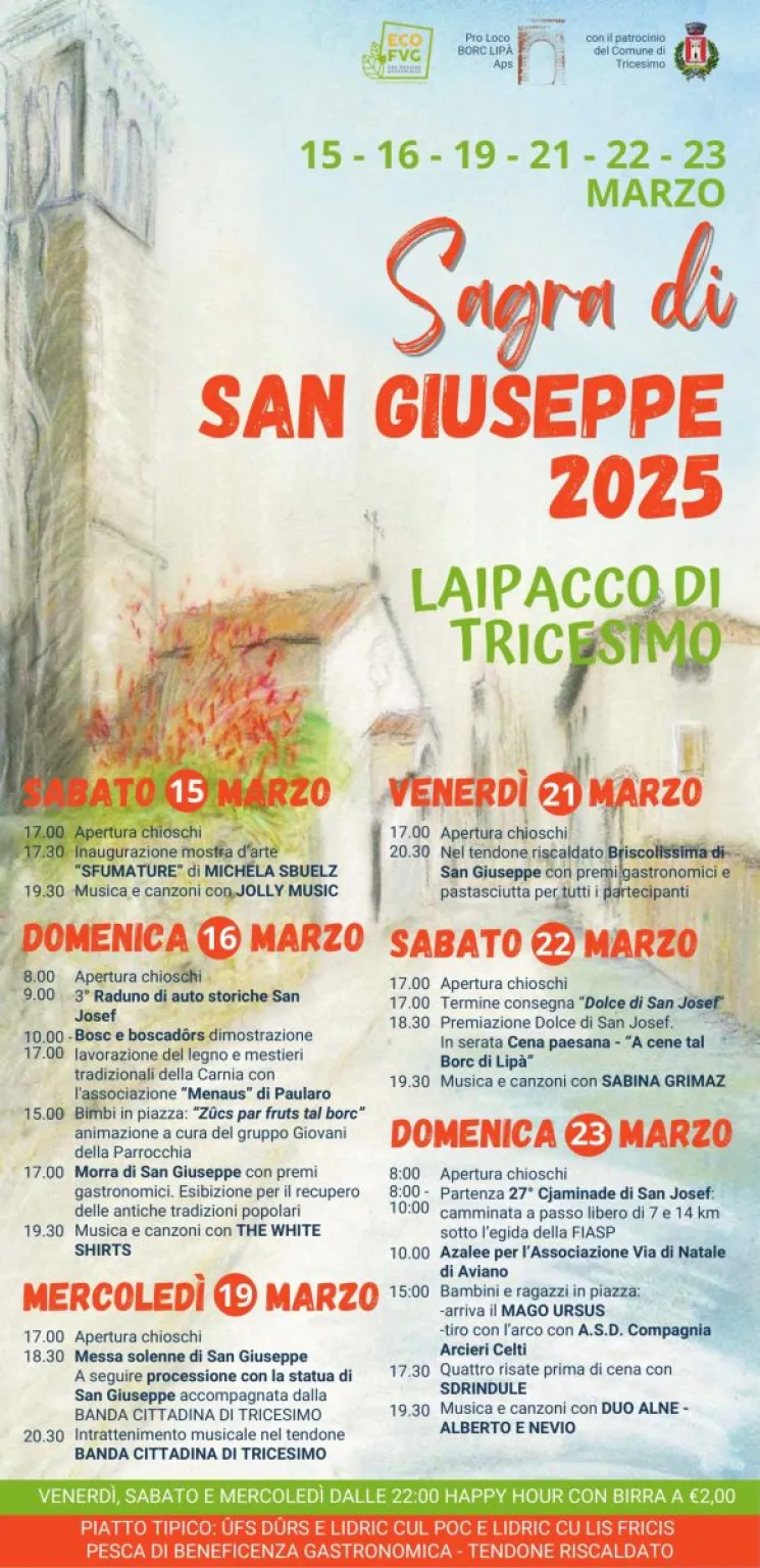 L'evento inaugurale si terrà sabato 15 marzo alle ore 17:30, presso la sala polifunzionale nella piazzetta di Laipacco di Tricesimo.