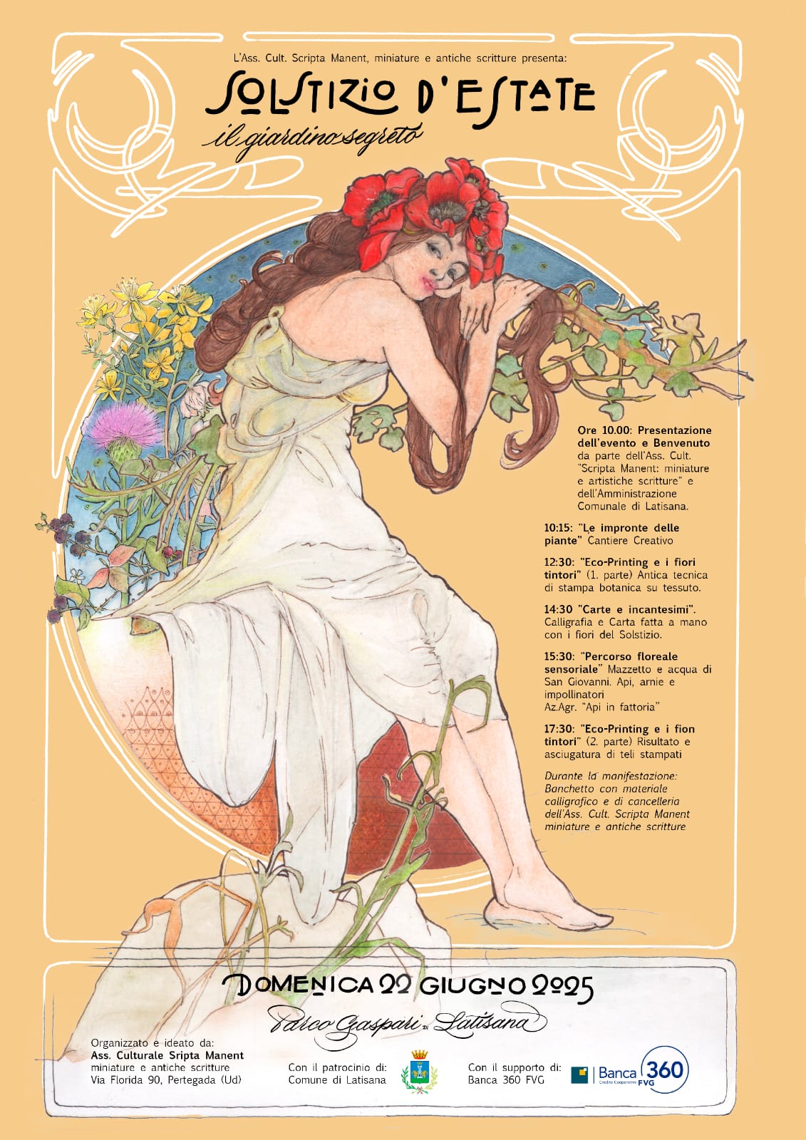 L' Associazione Culturale "Scripta Manent: miniature e antiche scritture" organizza l'evento "Solstizio d'estate: il giardino segreto", giunto alla 4^ edizione, laboratori cantieri creativi, antiche tecniche di stampa botanica, calligrafia e carta fatta a mano, in compagnia di api, arnie e impollinatori...ci sarà da divertirsi!