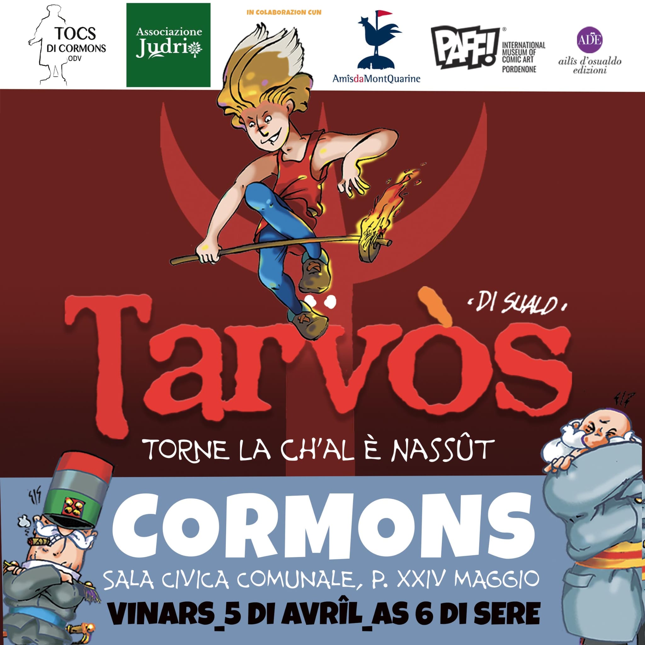 Il 5 aprile ritorna lì dove è stato creato con una nuova avventura piena di disincantata ironia. Lo hanno invitato le associazioni cormonesi per fargli ricordare quell’inimitabile Cormòns, le sue personalità e ciò che aveva rappresentato per la cultura e la società non solo friulane.