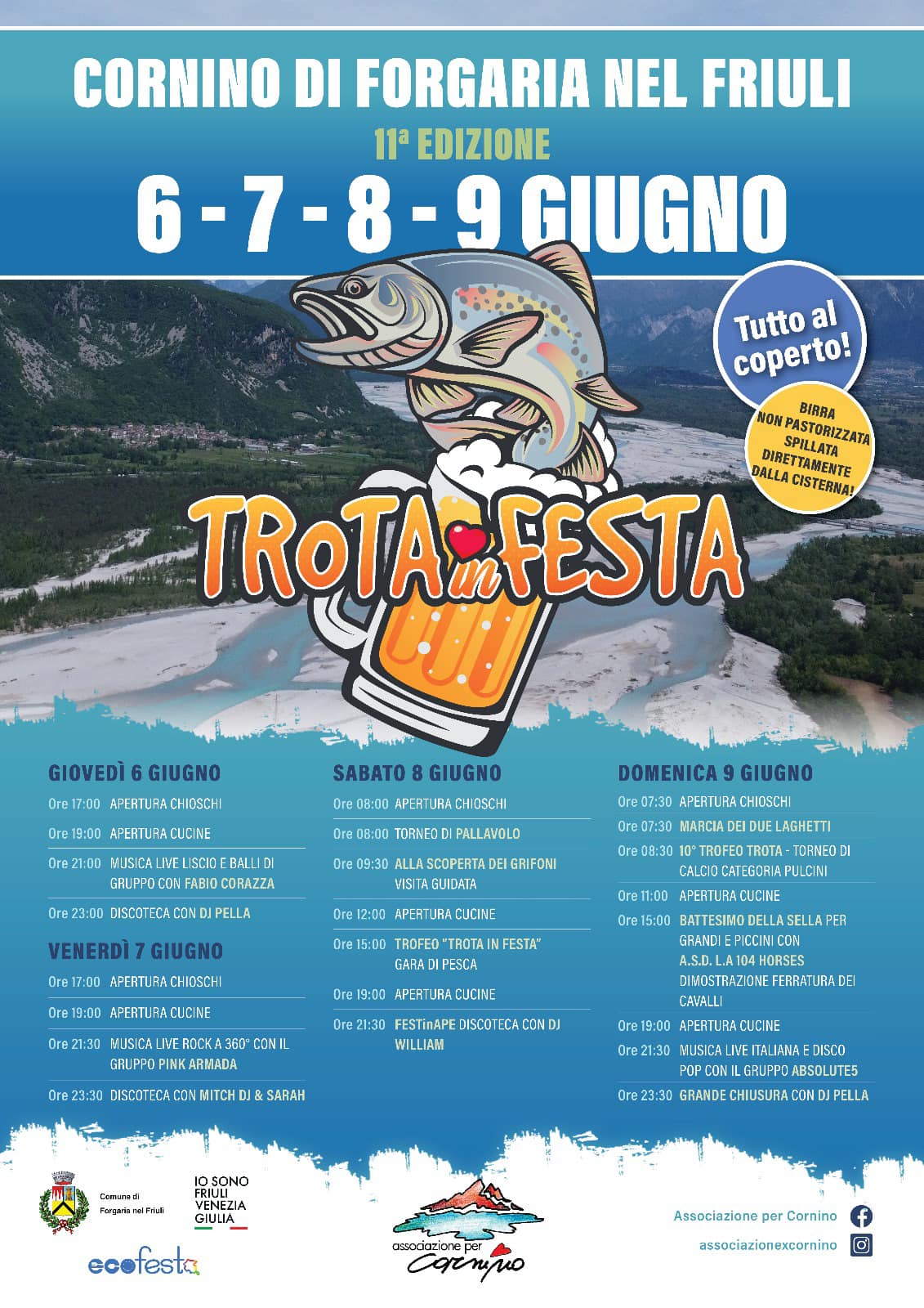 Dalla marcia alla gara di pesca... dalle serate con musica live alla discoteca: ecco qui il programma di tutte e quattro le giornate di festa dal 6 al 9 giugno a Cornino di Forgaria!
