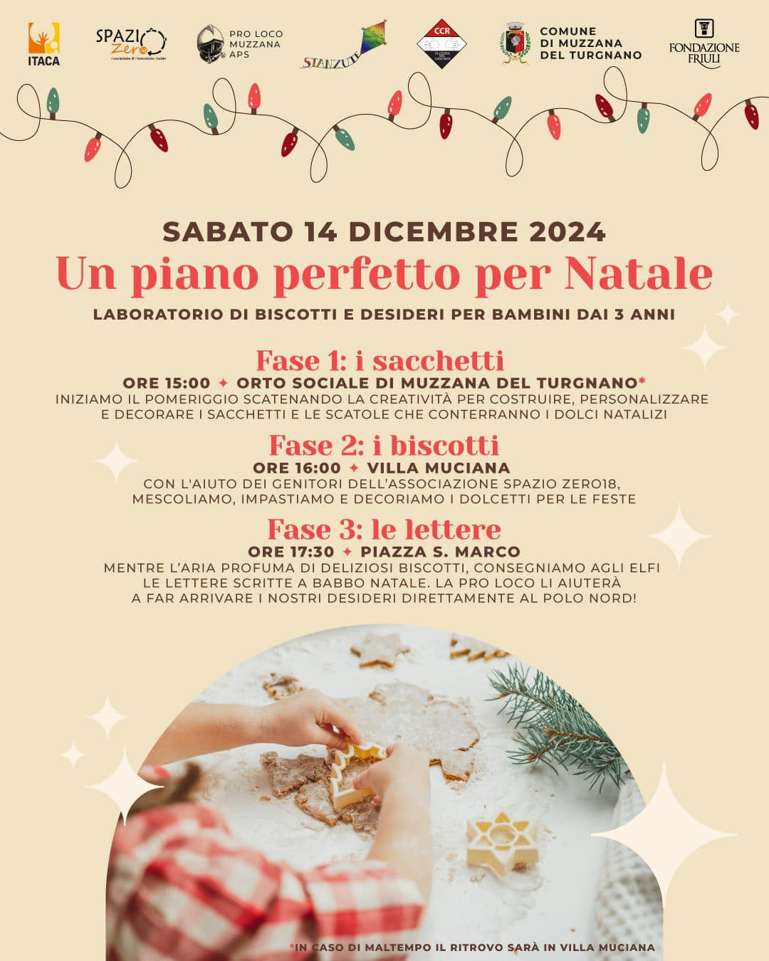 Sabato 14 dicembre 2024, Laboratorio di biscotti e desideri per bambini dai 3 anni.