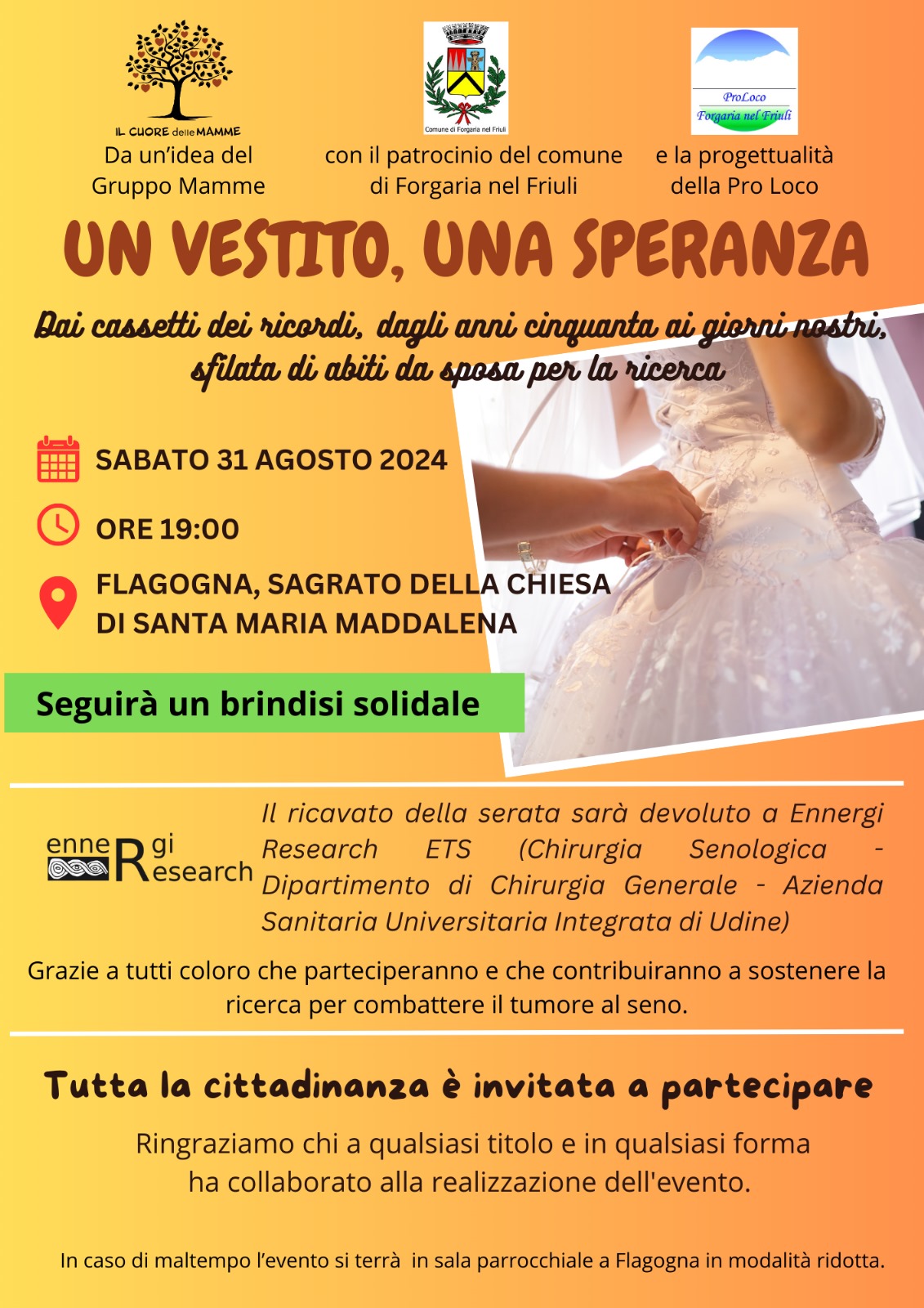 Dai cassetti dei ricordi, dagli anni '50 ai giorni nostri, sfilata di abiti da sposa con raccolta fondi con andrà devoluta a Ennergi Research