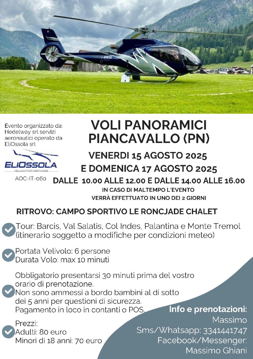 Torna l'appuntamento con i voli turistici in elicottero a Piancavallo.