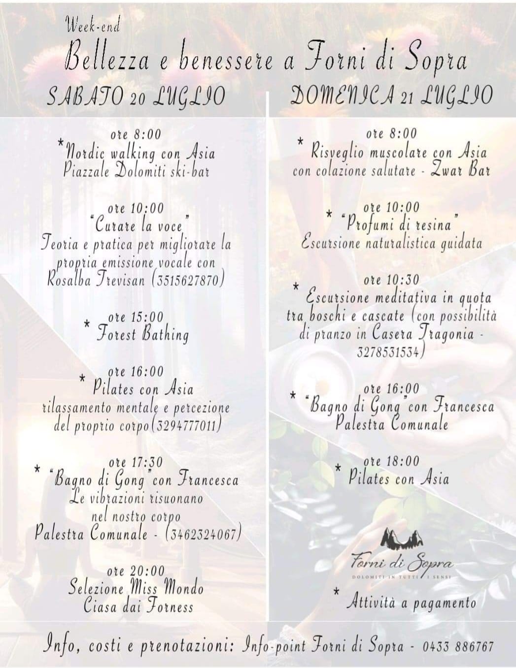 ESCURSIONE MEDITATIVA IN QUOTA TRA BOSCHI E CASCATE – Partenza da Loc. Puonsas, accompagnati da Tommaso: 6 km, 400 m dislivello. Costo: € 25,00. Possibilità di pranzo in malga Tragonia. Info e prenotazioni: 327 8531534